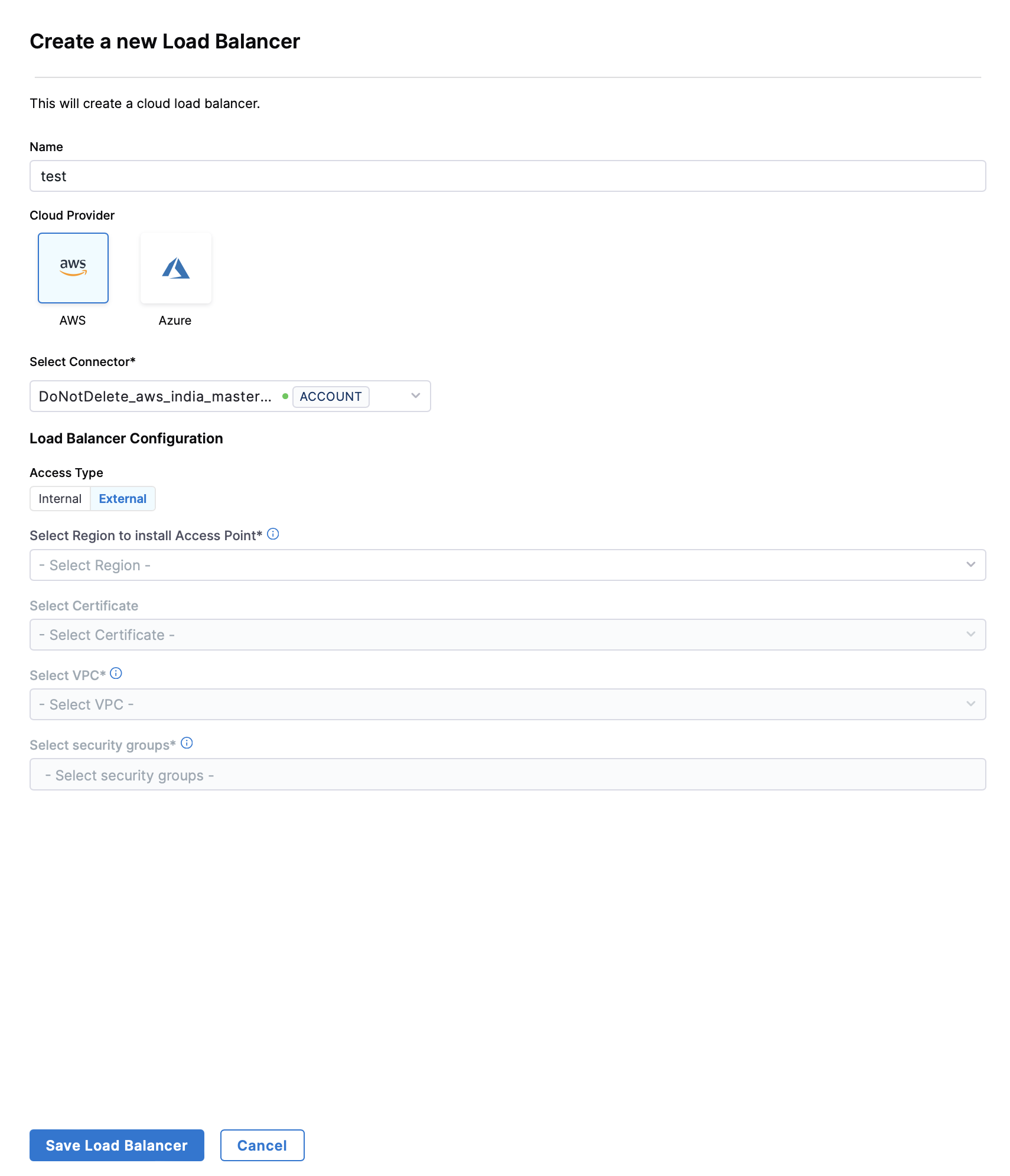 Enter Load Balancer Configuration.